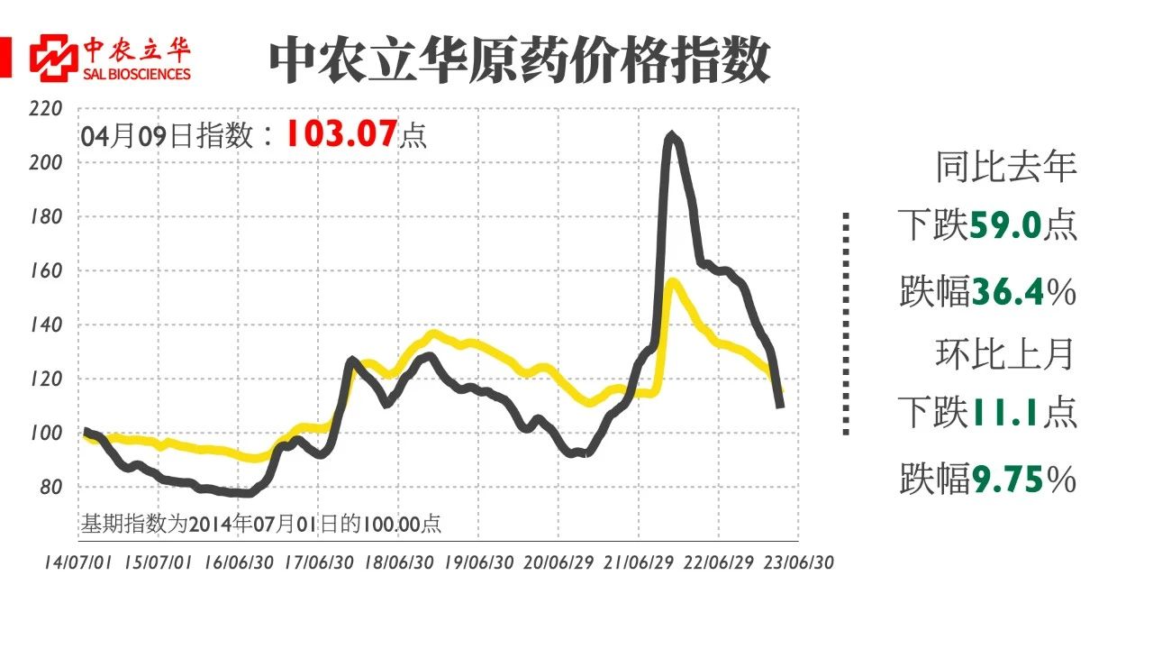 The prices of three major categories of pesticides continue to decline